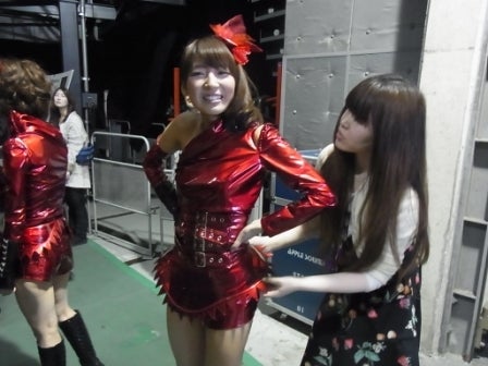 そして、楽屋口へ戻ると、スタンバイ中のメンバーを発見!