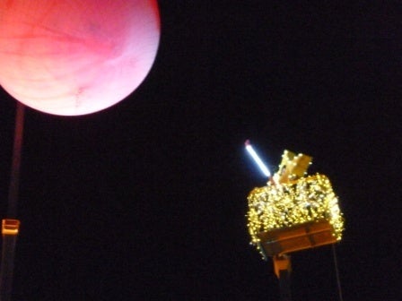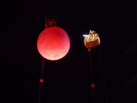 地上30メートルの高さに吊ってある巨大風船を