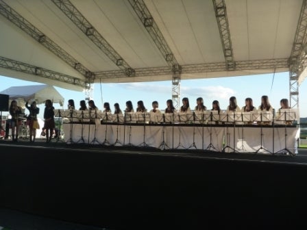 イベントはSDN48新曲披露以外にも、研究生へハンドベル演奏の