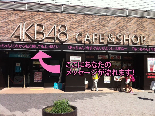 今まで応援して下さった各会員の皆さんから、前田敦子への卒業メッセージをお寄せいただき、卒業公演当日である8月27日に、AKB48公式サイトとAKB48 カフェ&ショップ 秋葉原の電光掲示板に掲示させていただきます。