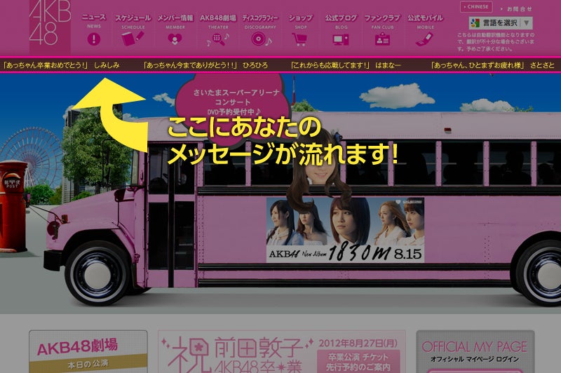 前田敦子、AKB48として最後の日。皆さんの暖かいメッセージであっちゃんを送り出していただければ幸いです。