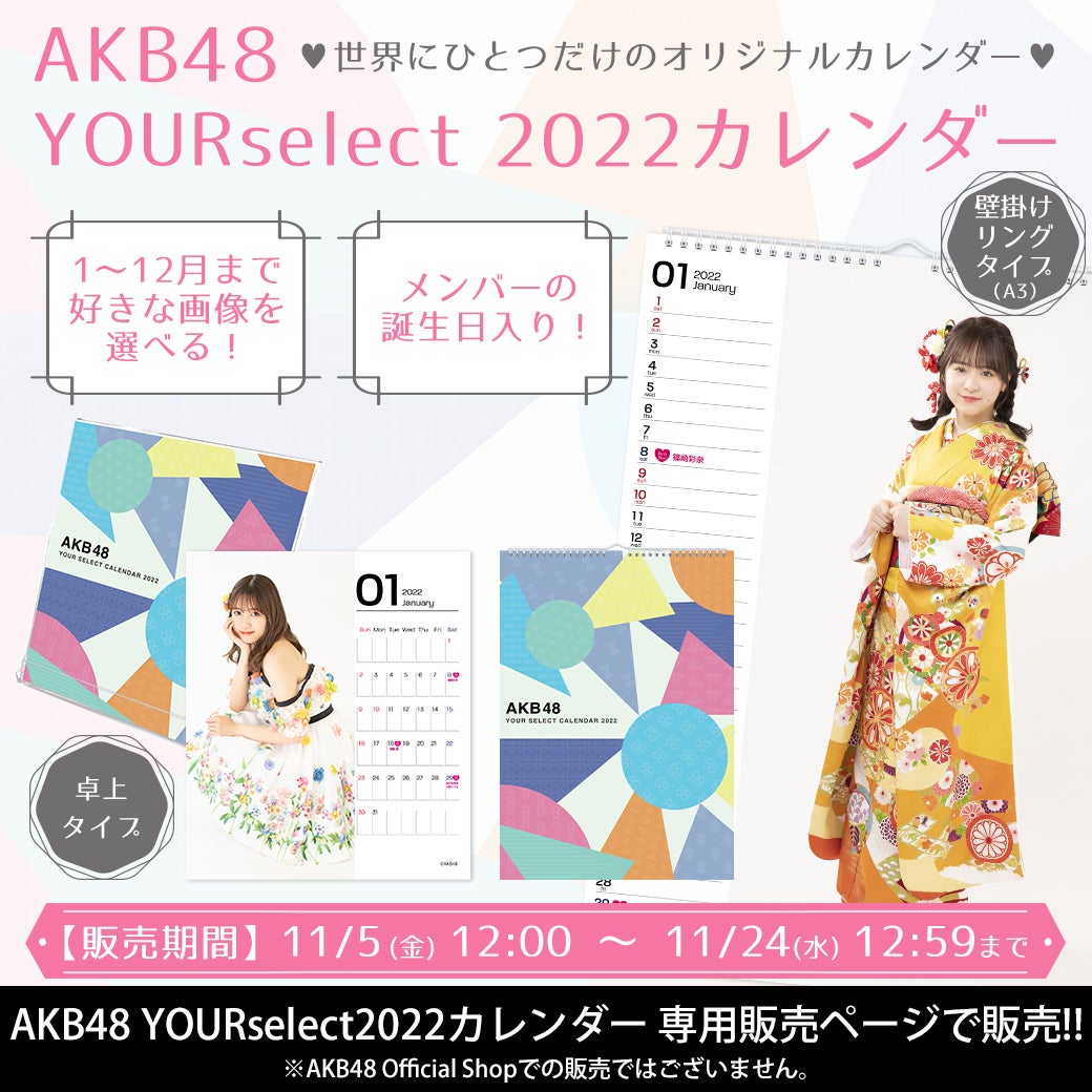 【販売期間のお知らせ】AKB48 YOURselect2022カレンダー