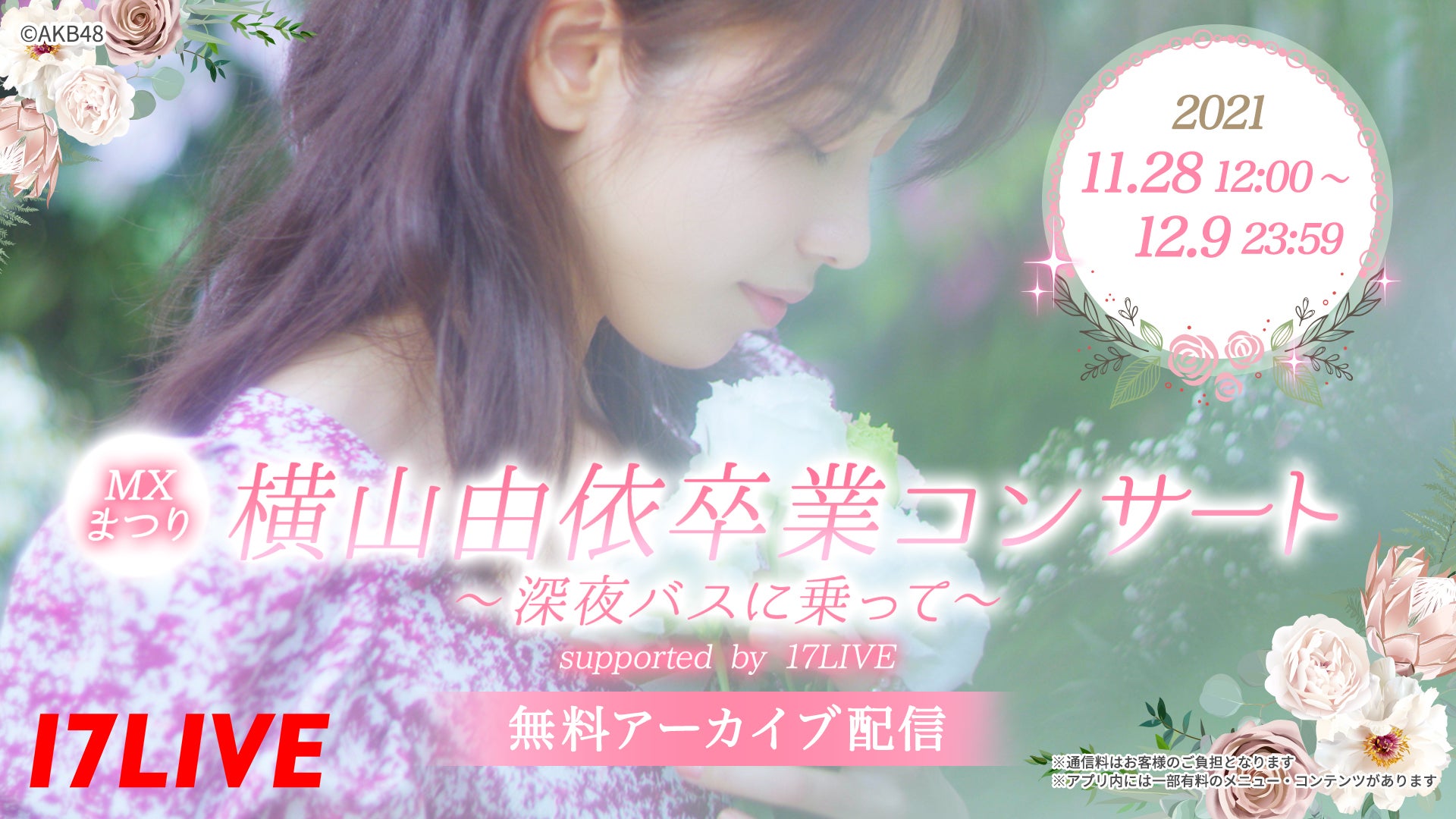もう一度見たいという方はもちろん、見逃してしまったという方も、ぜひこの機会に17LIVEをダウンロードして「MXまつり 横山由依卒業コンサート〜深夜バスに乗って〜 supported by 17LIVE」「“アフタートーク”ライブ配信」をお楽しみください!
