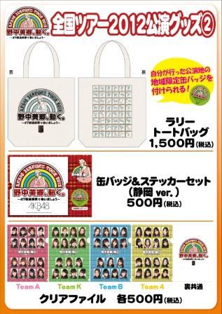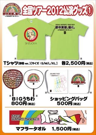 明日、静岡市民文化会館にて開催いたします、全国ツアー2012「野中美郷、動く。~47都道府県で会いましょう~」のグッズ販売をご案内いたします。