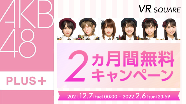 日々のAKB48劇場の公演生配信・アーカイブ配信に加えて、VRオリジナルコンテンツ「右も左もMember」や「VR握手会」などが以下の対象2ヶ月間、無料で視聴ができるキャンペーンを