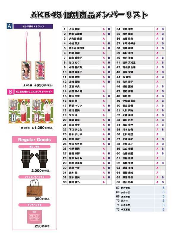 ・AKB48個別B2カレンダー 2017 全10種 販売価格 各3,000円(税込)