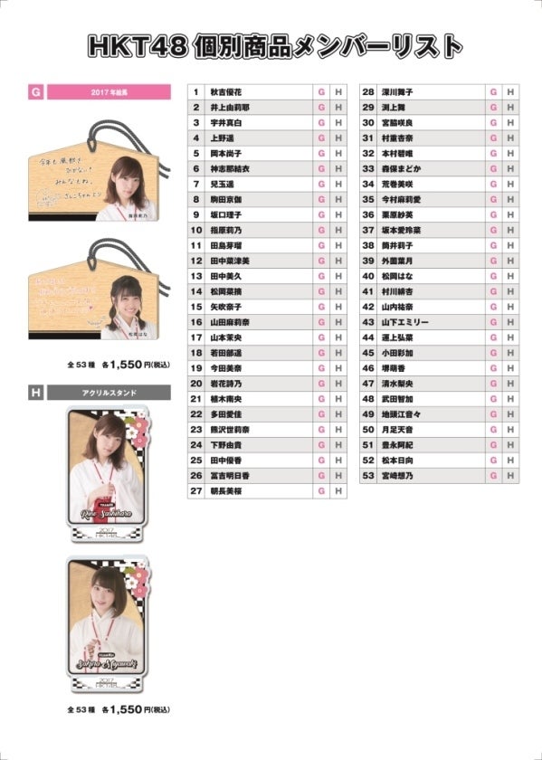・HKT48個別卓上カレンダー 2017 全43種 販売価格 各2,000円(税込)